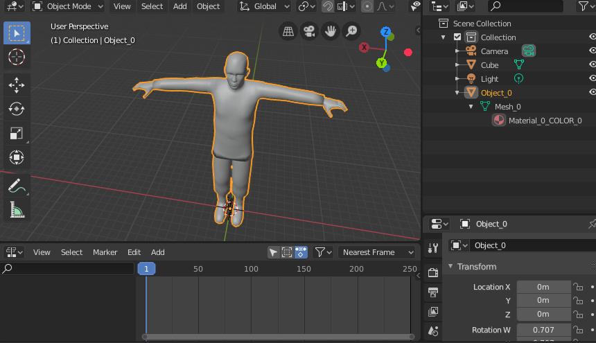 and the process completed with a GLTF file. Unfortunately, when I import it to Blender, all I have is the skeleton and the animations but not the mesh (or materials, which I expected not to be there).