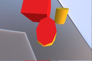 Blue cylinder masked by red cube: