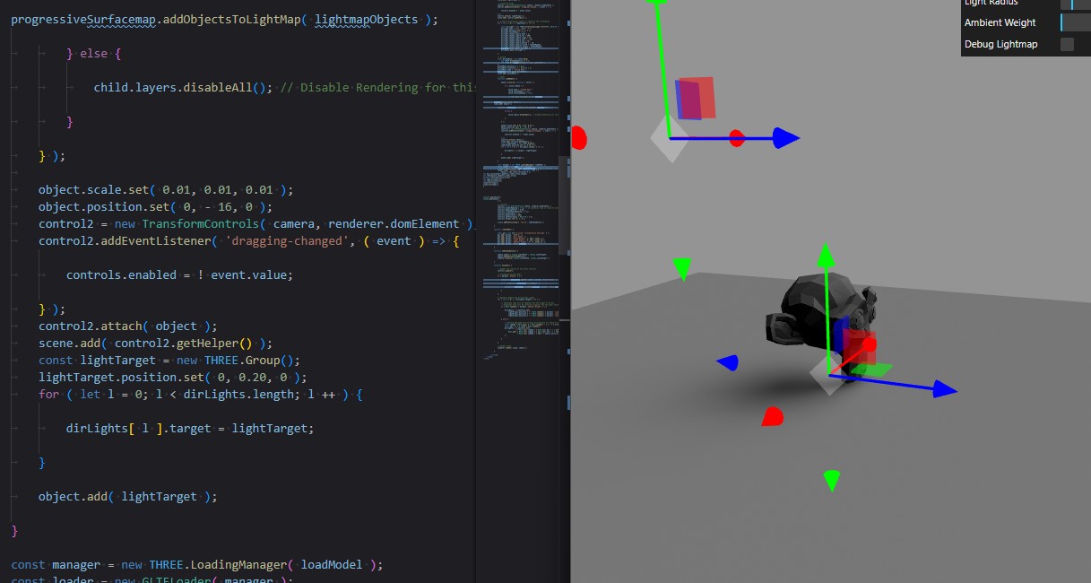 5 - Import this new GLB in ThreeJS and use ProgressiveLightMapwith with its new uv1.