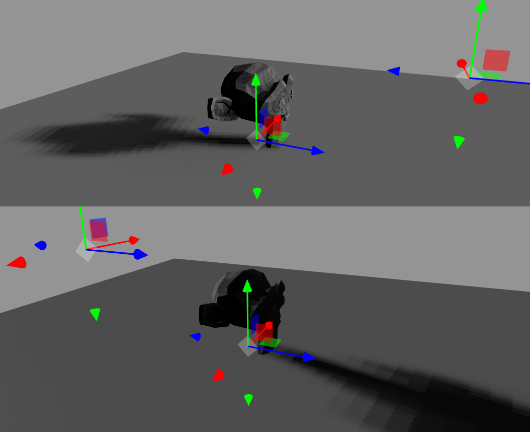 I’ve tried to decrease the plane and the monkey (as other objects) to real world size, but it seem that both shadows and lightmap don’t come from the right position anymore…