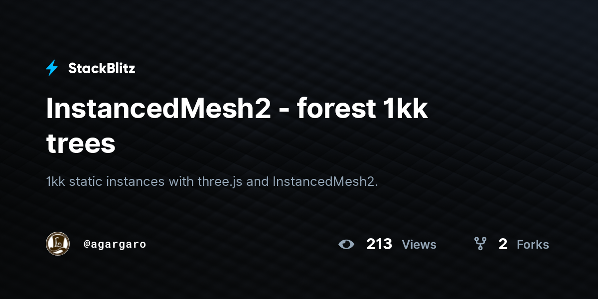 problem, And I reduced the quantity of the instances so that it does not crash when their matrix are not updated. three.ez - InstancedMesh2 - CullingStatic 1kk Forest (forked) - StackBlitz