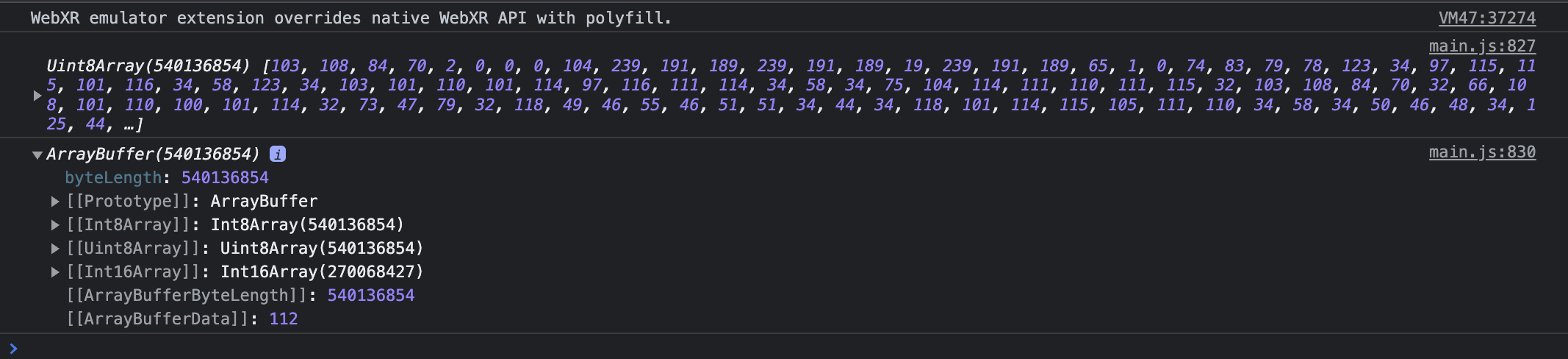 I am getting the console result as an UInt8Array and an arraybuffer (Attaching a screenshot)