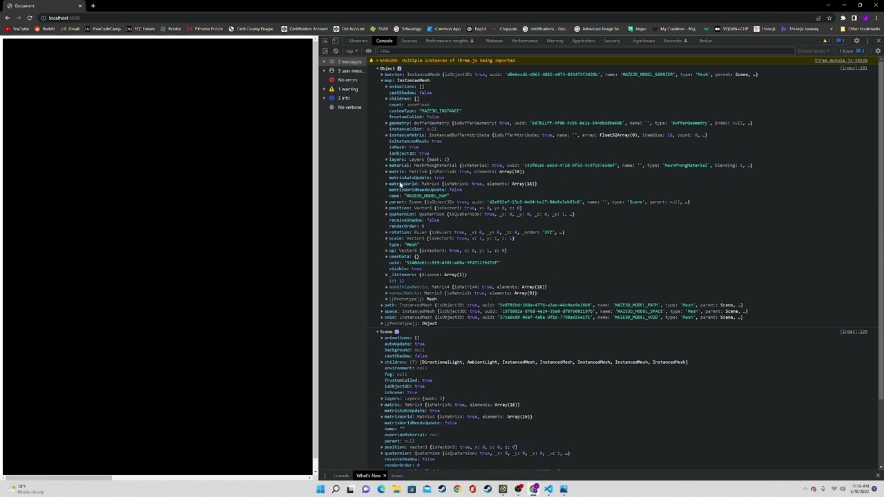 I am working on a program that generates 3D models made up of instance meshes. Out of nowhere while working with it, all of the generated 3D objects added to the scene just do not display.