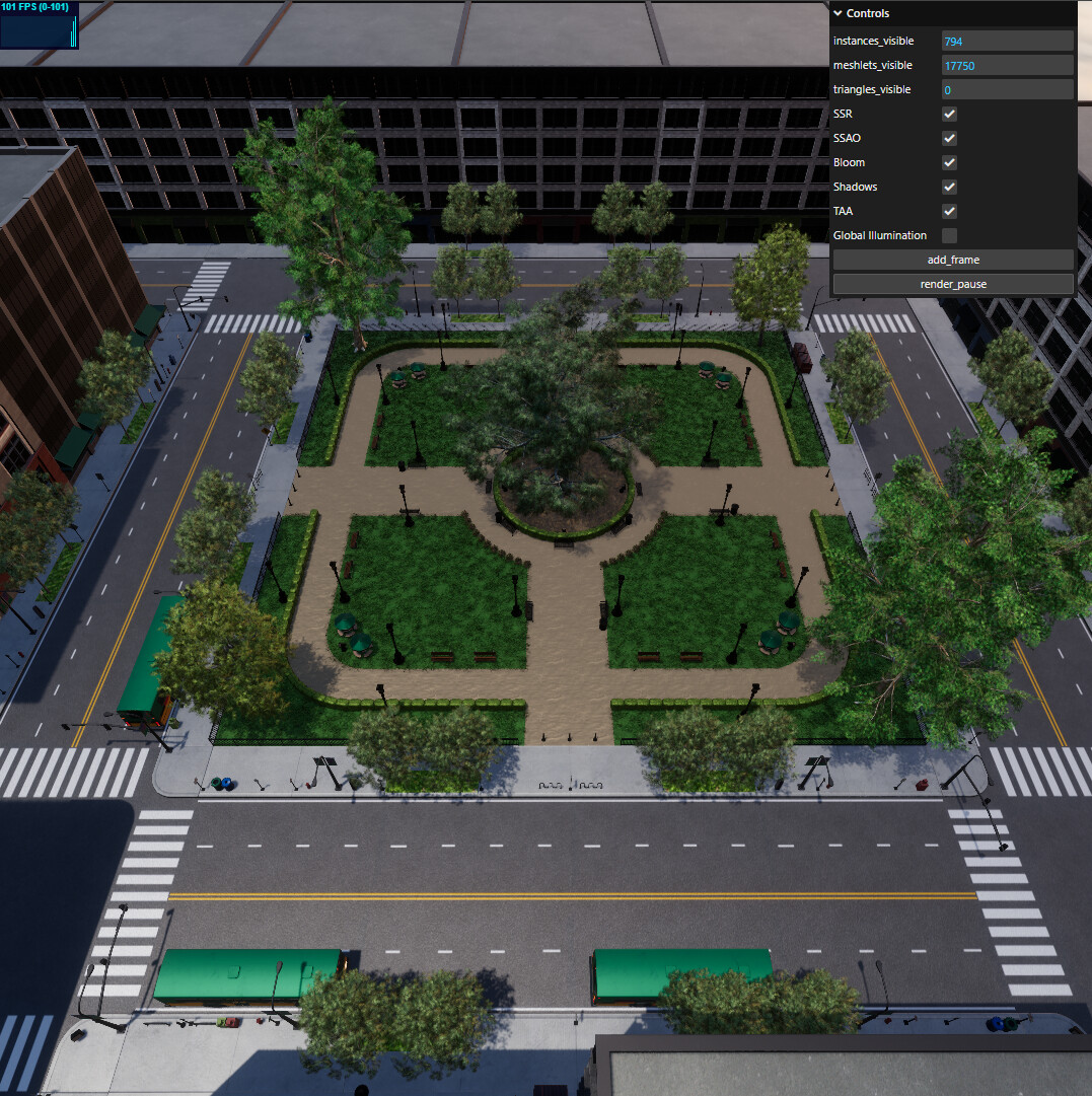 Beyond that, I spent a lot of time optimizing shadow map rendering. I don’t have concrete decoupled numbers, but I have been using the Emeral Square scene as a benchmark, as it has a ton of geometry and alpha-tested vegetation